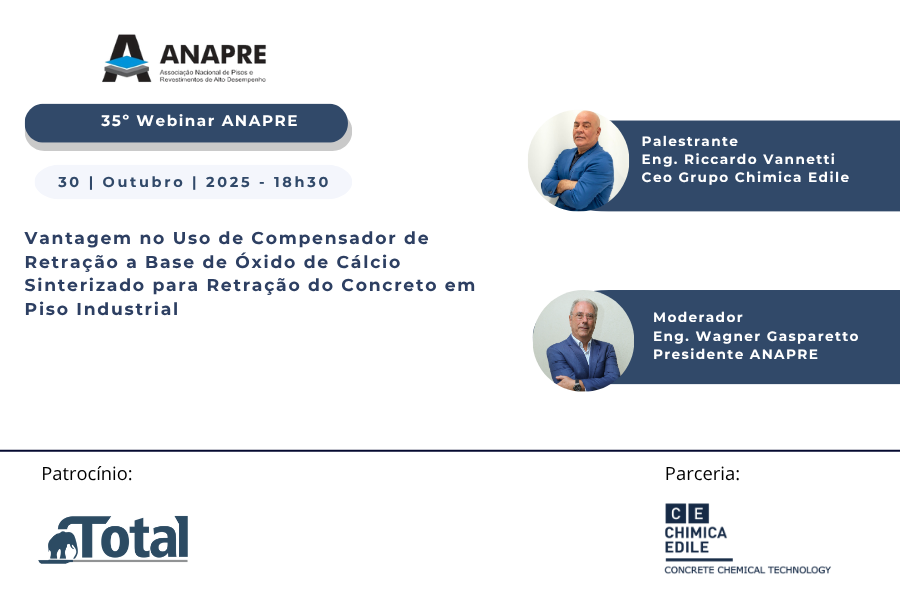 Visando orientar associados, clientes e sociedade em geral sobre diretrizes, procedimentos e sugestões sobre projeto e execução de pisos industriais a ANAPRE disponibiliza uma série de recomendações. Convite para as próximas reuniões!