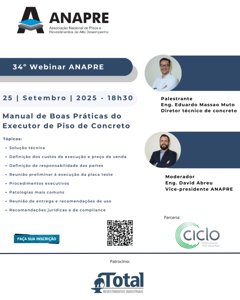 34º Webinar ANAPRE | Manual de Boas Práticas para o Executor de Piso de Concreto