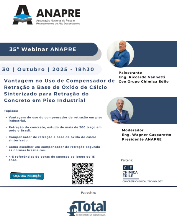Participe deste Webinar, amplie seus conhecimentos sobre compensador de retração a Base de Óxido de Cálcio Sinterizado para Retração do Concreto em Piso Industrial.
