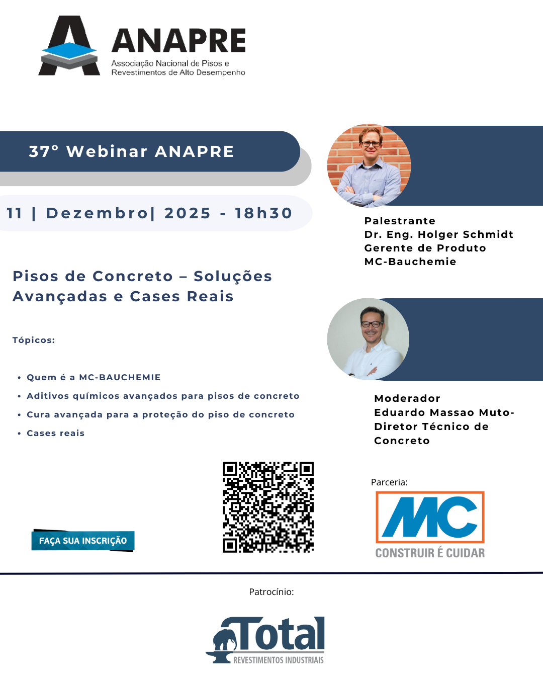 Participe deste Webinar, amplie seus conhecimentos sobre Pisos de Concreto – Soluções Avançadas e Cases Reais.