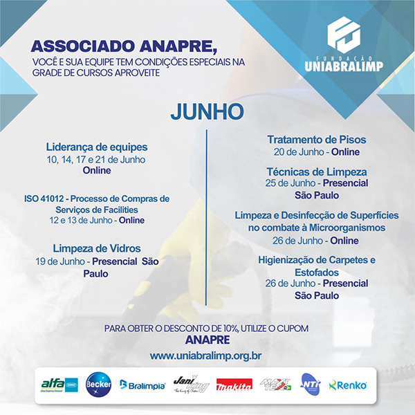 Membros da ANAPRE possuem desconto especial de 10% em todas as inscrições.