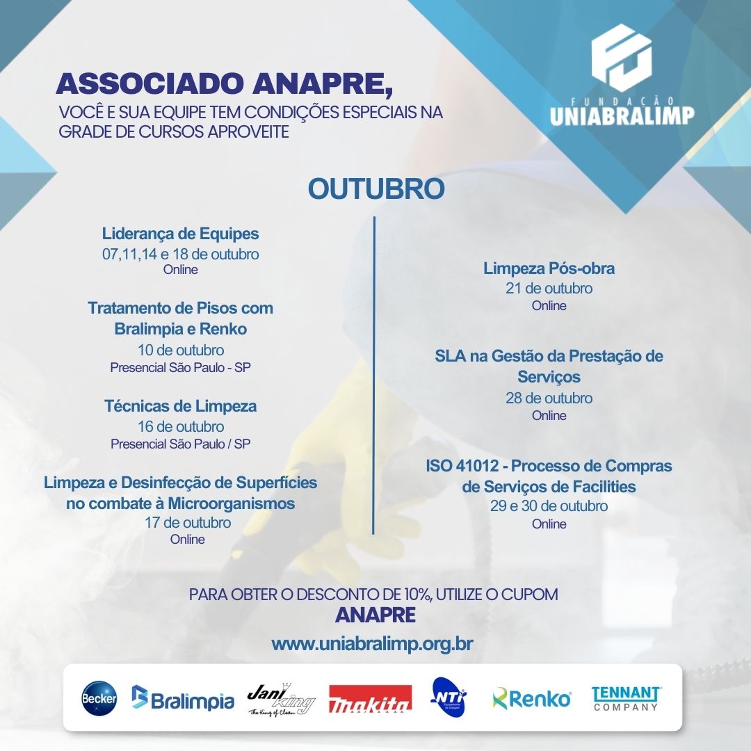Membros da ANAPRE possuem desconto especial de 10% em todas as inscrições.